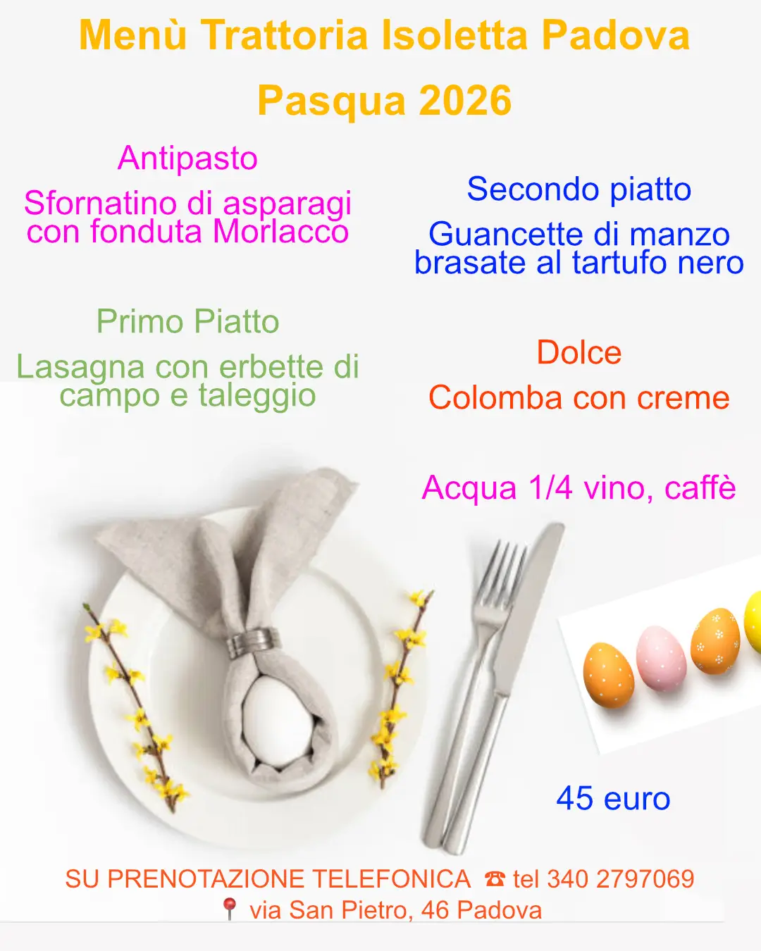 Unitevi a noi per festeggiare la Pasqua con un menu speciale, che esalta i sapori della nostra cucina tradizionale.